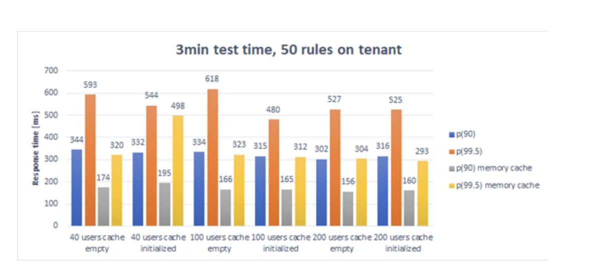To verify the scalability, we performed a number of performance tests for different traffic and rules counts using k6 (https://k6.io ) and the results were excellent:
