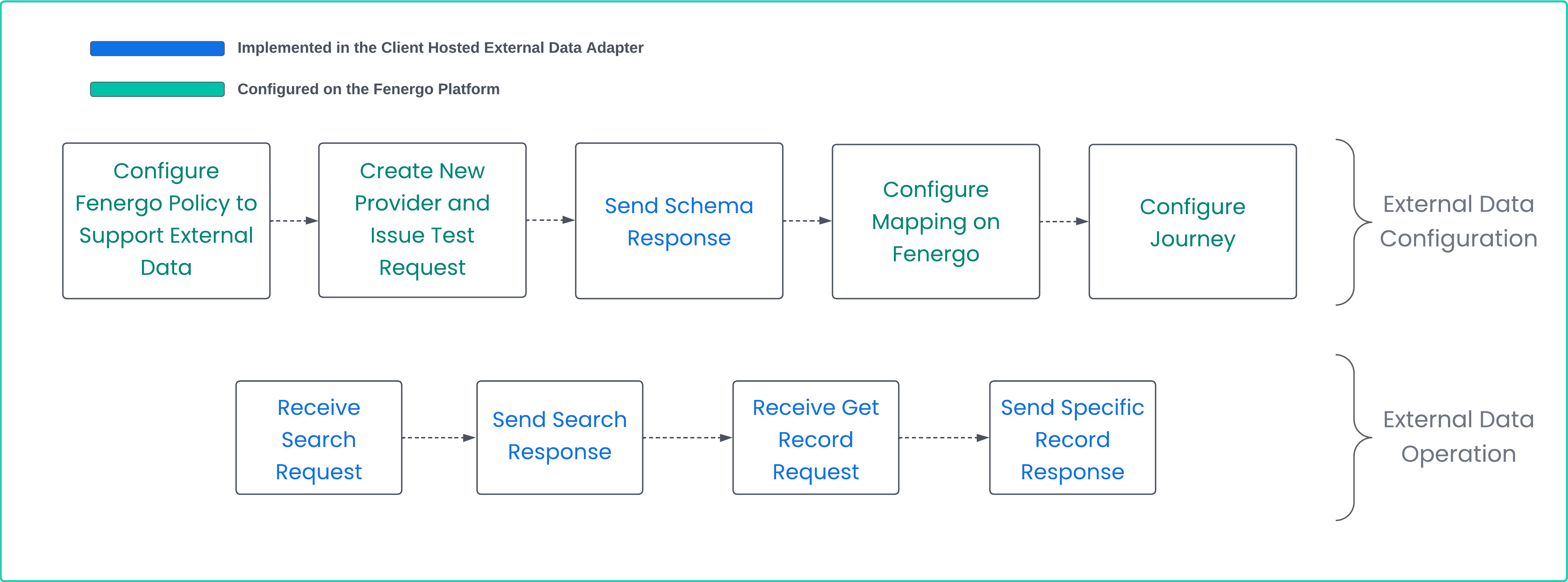 External Data Configuration Steps as illustrated above are done either On the Fenergo Platform or implemented within your hosted adapter.
