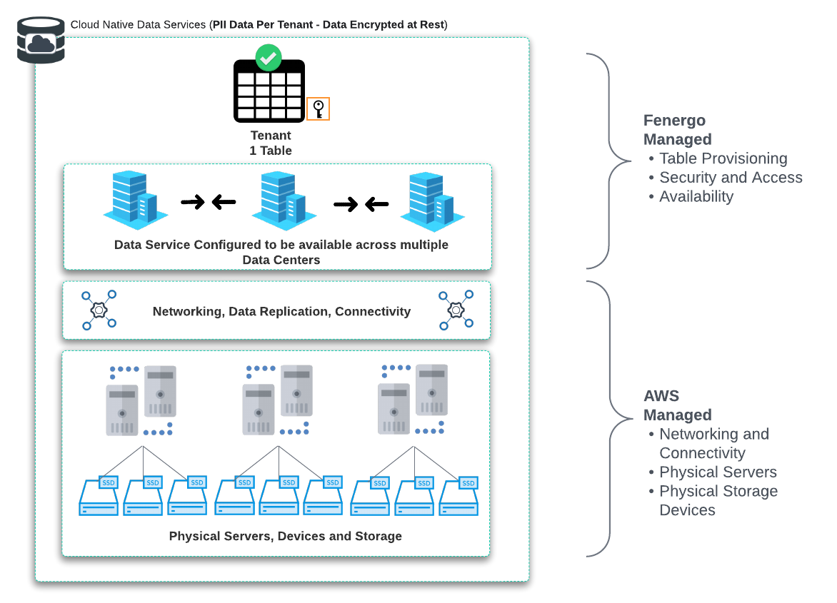 - When a new Tenant is provisioned for a client, the data stores for PII (Personally Identifiable Information) are created with the permission for that specific tenant only. This cannot be changed after provisioning.