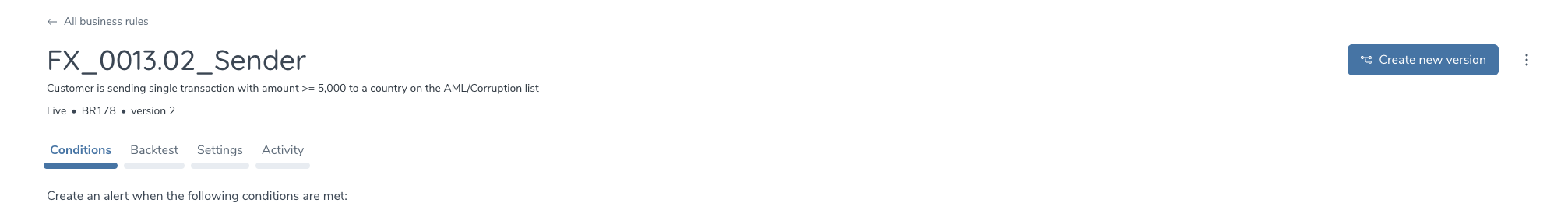 | Create new version | Create another version of a live rule |